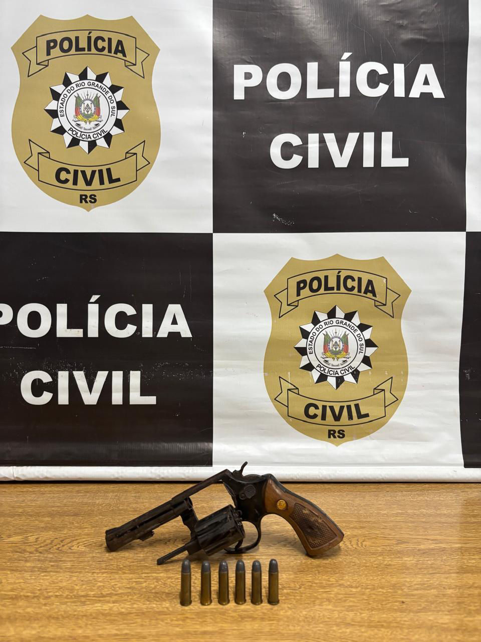 Durante as buscas, os policiais localizaram e apreenderam um revólver calibre .38 municiado com seis munições intactas.